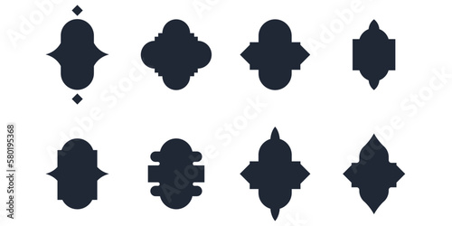 Collection of oriental style Islamic ramadan kareem and eid mubarak windows and arches with modern style design, door mosque, mosque dome