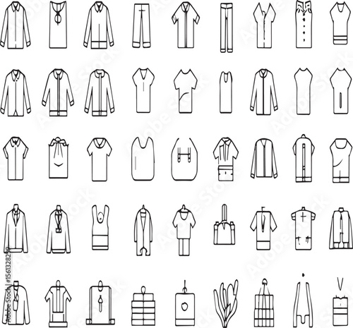 Collection of outlined clothing items including shirts jackets and pants in a grid pattern