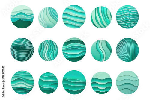 Collection of oval blue and green badges isolated on transparent background. Set of round abstract badges icons or shapes in green and blue colors isolated on white background.