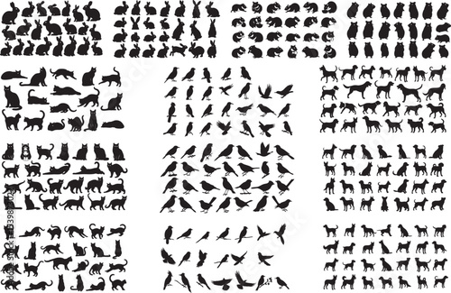 Collection of pet silhouettes such as Cat, Dog, Rabbit, Hamster, and Bird