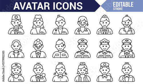 Collection of professional avatar icons, showcasing jobs like doctor, nurse, police officer, and more.