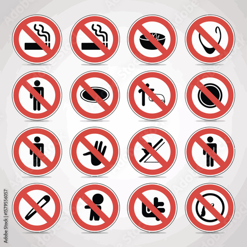 Collection of prohibition signs and forbidden symbols for safety and regulations