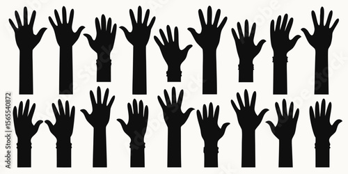 Collection of raised hands silhouettes diverse gestures