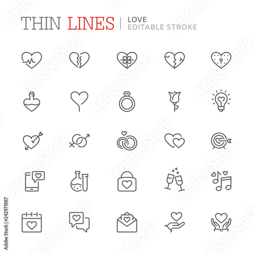 Collection of Saint Valentines Day related icons. Editable stroke