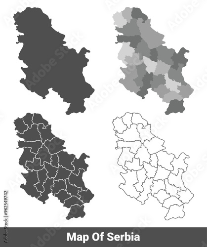 Collection of Serbia country grey political maps set with border outline vector illustration