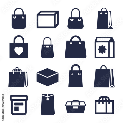 Collection of shopping bags and boxes on white background