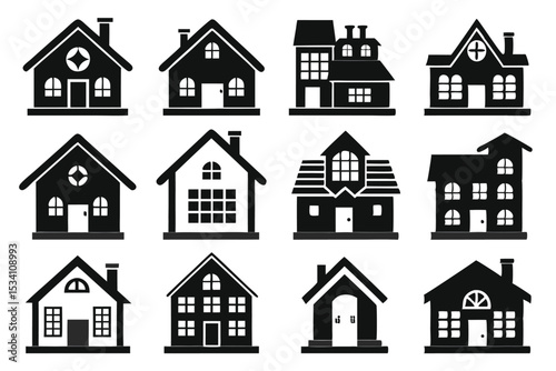 Collection of simple black and white house illustrations suitable for real estate or architecture themes