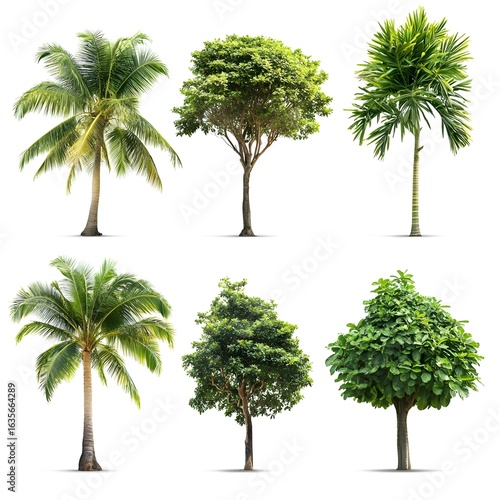 Collection of Six Isolated Tropical Trees on White Background
