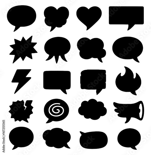 Collection of sixteen different speech bubbles and thought balloons shapes
