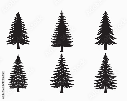 Collection of Spruce Plant vector illustration - Spruce Tree Silhouettes Clipart Design