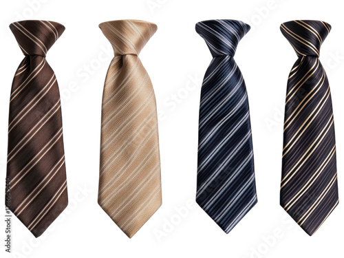Collection of stylish neckties with striped patterns, displayed cut out transparent isolated PNG