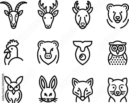 Collection of stylized animal head icons in a clean line art design