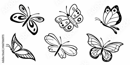 Collection of Stylized Black and White Butterfly Illustrations