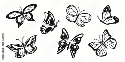 Collection of Stylized Black and White Butterfly Silhouettes 1.