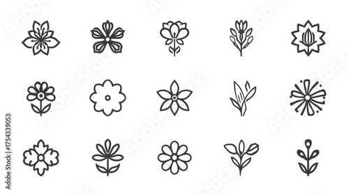 Collection of Stylized Botanical Illustrations Featuring Various Flower and Leaf Designs Suitable for Decorative Purposes