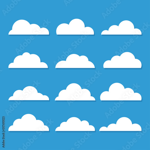 Collection of stylized cloud silhouettes. Set of cloud icons. Vector illustration.