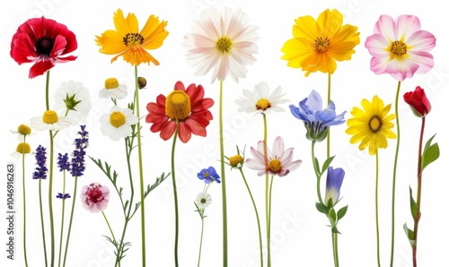Collection of summer flowers painted in grunge oil painting style. Isolated on white background