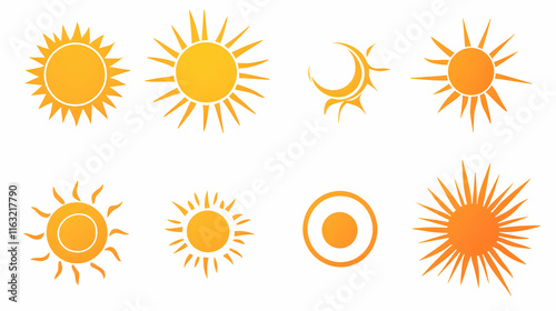 Collection of Sun Icons, Bright, Diverse Designs for Summer Projects