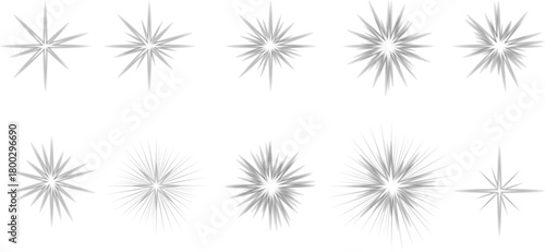 Collection of Ten Abstract Starbursts and Sparkle Graphics on White Background Keywords: starburst