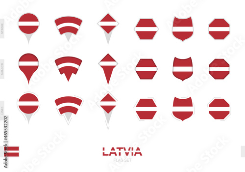 Collection of the Latvia flag in different shapes and with three different effects.