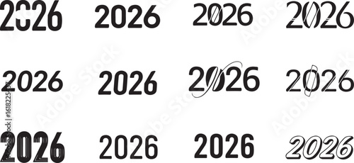 Collection of the year 2026 numbers in various fonts isolated on transparent background