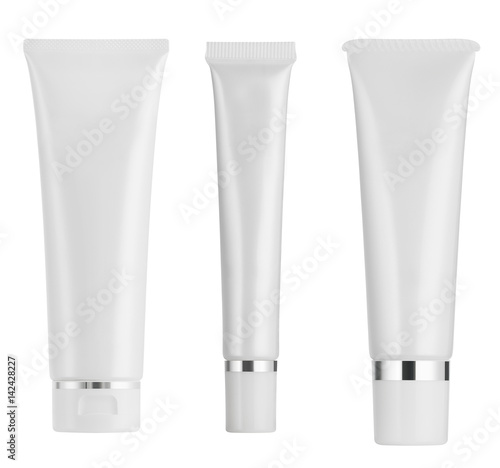 collection of three tube for cream or lotion isolated on white background