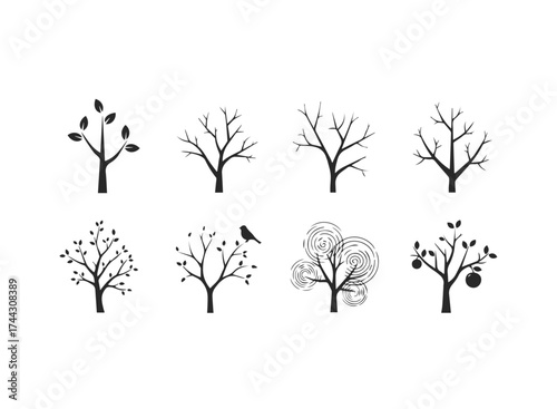 Collection of tree silhouettes in different seasons