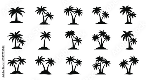 Collection of tropical palm tree silhouette graphics for coastal vacation design projects