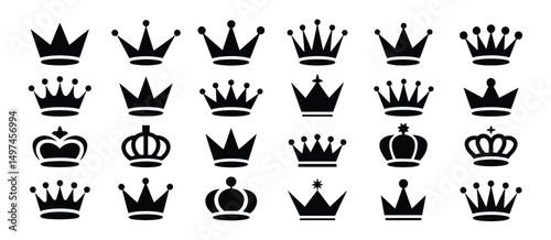 Collection of Twenty Four Black Crown Icons
