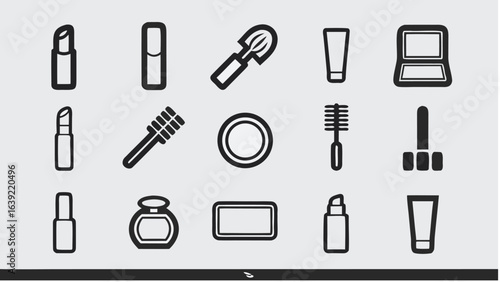 Collection of various beauty and makeup products displayed in a simple black and white style design | editable eps vectors silhouette