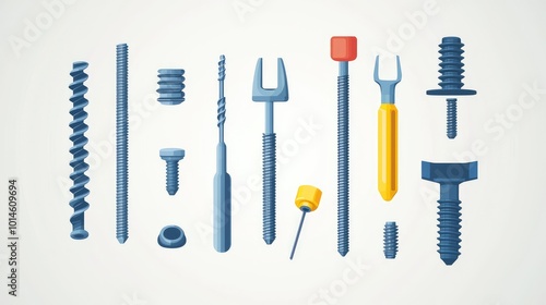 Collection of various construction tools and fasteners arranged neatly, ideal for DIY and professional projects.