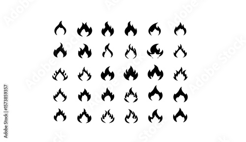 Collection of various flame icons arranged in a grid on white background