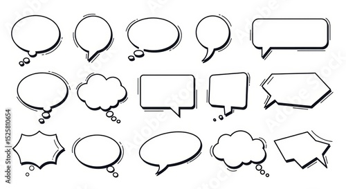 Collection of Various Hand-Drawn Comic Speech Bubbles and Thought Clouds for Design Elements
