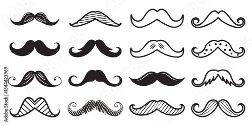 Collection of Various Hand-Drawn Mustache Styles in Black and White