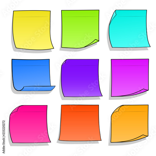 Collection of various note papers. Hand drawn doodle notepaper for messages set. Vector illustration