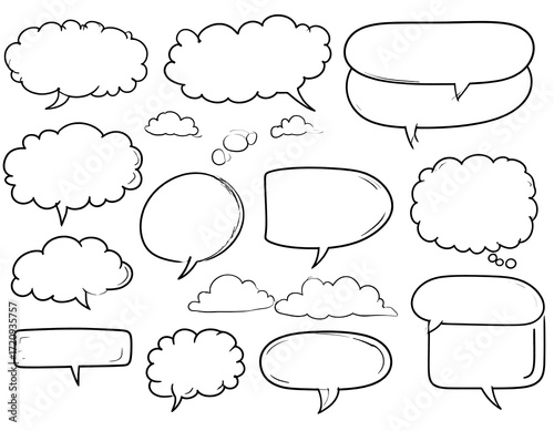 Collection of various speech bubbles in a simple line art style