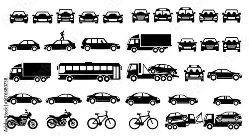 Collection of Various Vehicle Silhouettes Including Cars, Trucks, and Motorcycles