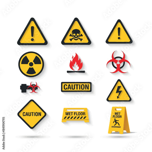 Collection of various warning and caution signs.