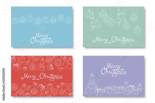 Collection of vector colorful hand drawn Merry Christmas cards. Winter holiday beautiful backgrounds
