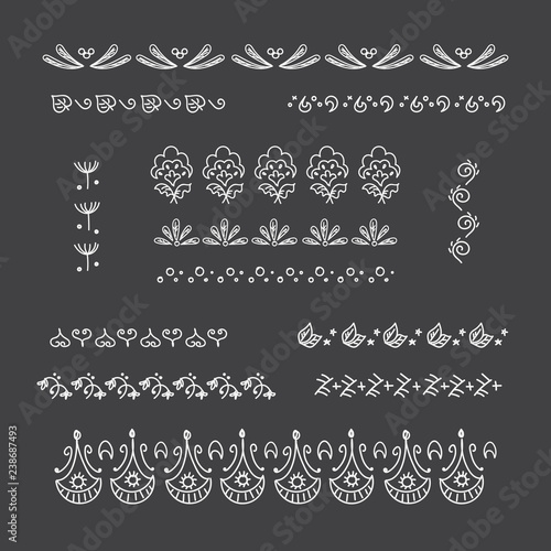 Collection of vector graphic borders frames. Geometric and plant motifs
