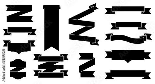 Collection of Vector Ribbons Silhouettes: A versatile collection of silhouetted vector ribbons, perfect for adding a touch of elegance and sophistication to design projects. Use for banners or labels.