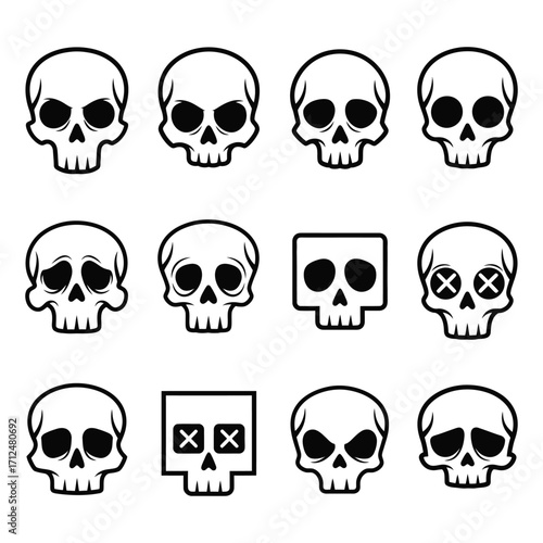 Collection of Vector Skull Illustrations Death, Bones, and Symbolism