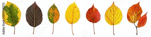 Collection of vibrant autumn leaves, isolated on white background. Autumn season concept.