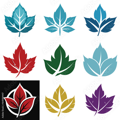Collection of Vibrant Leaf Logos in Various Colors and Minimalist Design
