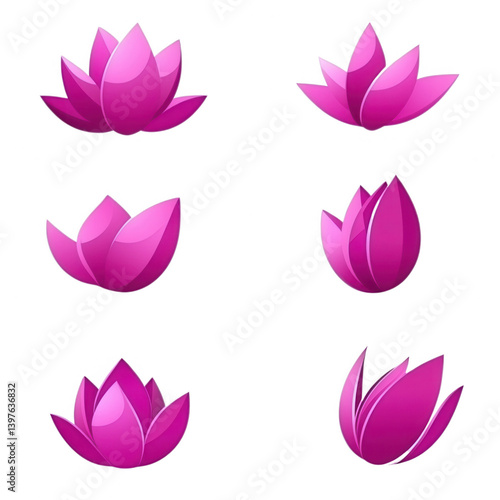 Collection of vibrant pink lotus flowers in various stages of bloom, set against a transparent background.