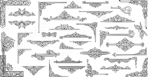 collection of victorian black and white design elements, delimiters, ornamental, corner, in a white background