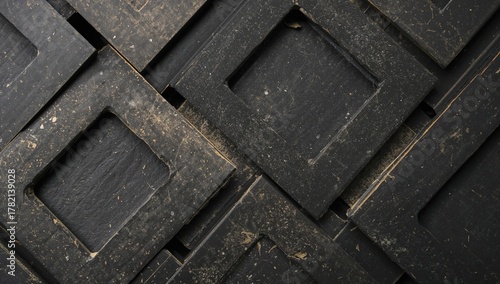 Collection of Vintage Black Cardboard Photo Frames with Distressed Texture for Creative Collages