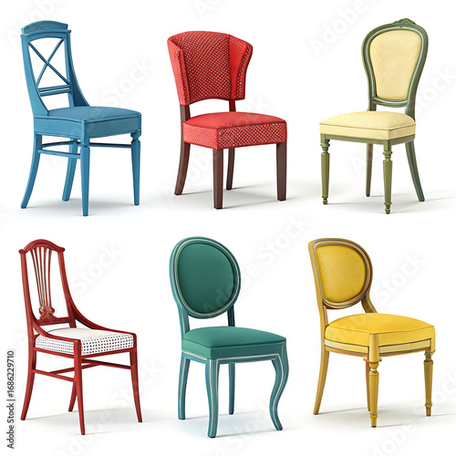 Collection of Vintage Chair set icon silhouettes set different colour white background