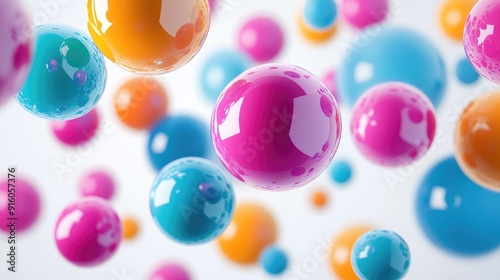Collection of vivid 3D colorful spheres on a white background, creating a modern brochure template