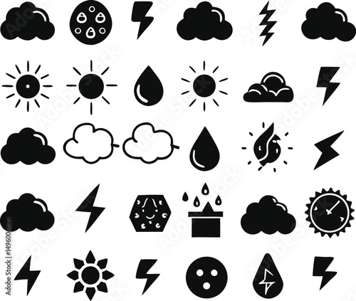 Collection of Weather Icons Sun Cloud Rain Lightning